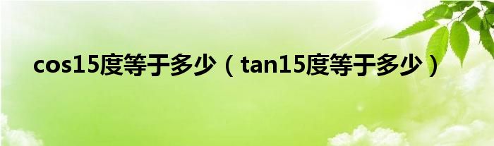 关于cos15度等于多少,tan15度等于多少这个很多人还不知道,今天菲菲来为大家解答以上的问题,现在让我们一起来看看吧!
