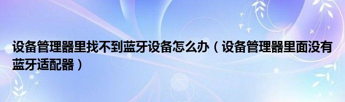关于设备管理器里找不到蓝牙设备怎么办,设备管理器里面没有蓝牙适配器这个很多人还不知道,今天菲菲来为大家解答以上的问题,现在让我们一起来看看吧!