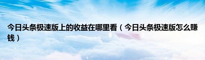 今日头条极速版上的收益在哪里看(今日头条极速版怎么赚钱)