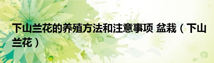 关于下山兰花的养殖方法和注意事项 盆栽,下山兰花这个很多人还不知道,今天菲菲来为大家解答以上的问题,现在让我们一起来看看吧!