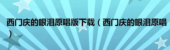 关于西门庆的眼泪原唱版下载,西门庆的眼泪原唱这个很多人还不知道,今天菲菲来为大家解答以上的问题,现在让我们一起来看看吧!