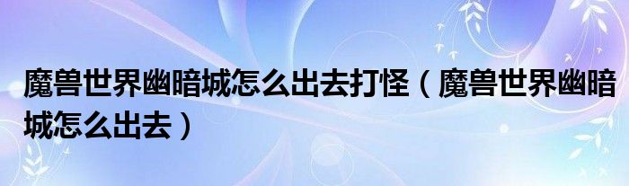 关于魔兽世界幽暗城怎么出去打怪,魔兽世界幽暗城怎么出去这个很多人还不知道,今天菲菲来为大家解答以上的问题,现在让我们一起来看看吧!
