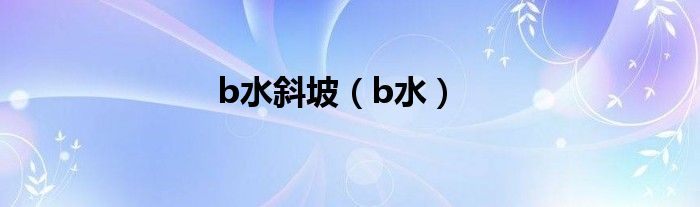 大家好,小晋来为大家解答以下问题,关于b水斜坡,b水很多人还不知道,今天让我们一起来看看吧!
