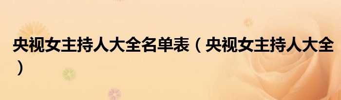 关于央视女主持人大全名单表,央视女主持人大全这个很多人还不知道,今天菲菲来为大家解答以上的问题,现在让我们一起来看看吧!
