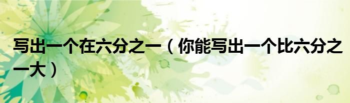 关于写出一个在六分之一,你能写出一个比六分之一大这个很多人还不知道,今天菲菲来为大家解答以上的问题,现在让我们一起来看看吧!
