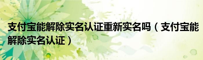 大家好,小晋来为大家解答以下问题,关于支付宝能解除实名认证重新实名吗,支付宝能解除实名认证很多人还不知道,今天让我们一起来看看吧!