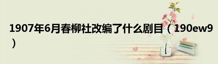 1907年6月春柳社改编了什么剧目,190ew9很多人还不知道,乐乐来为大家解答以上问题,现在让我们一起来看看吧!