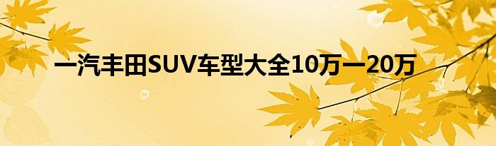 关于一汽丰田SUV车型大全10万一20万这个很多人还不知道,今天菲菲来为大家解答以上的问题,现在让我们一起来看看吧!