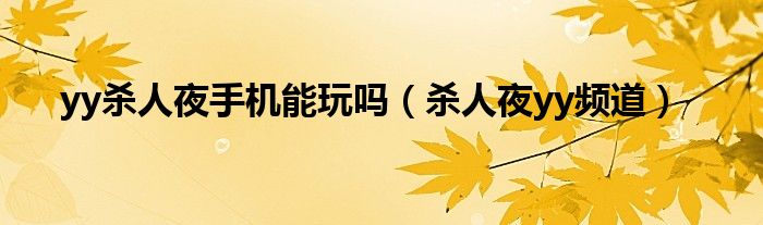 大家好,雨雨来为大家解答以上问题,yy杀人夜手机能玩吗,杀人夜yy频道很多人还不知道,现在让我们一起来看看吧!