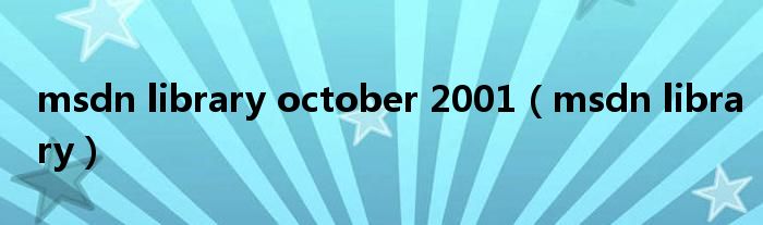 msdn library october 2001,msdn library很多人还不知道,乐乐来为大家解答以上问题,现在让我们一起来看看吧!