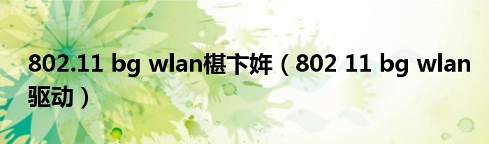 802.11 bg wlan椹卞姩(802 11 bg wlan驱动)