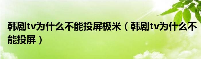大家好,小晋来为大家解答以下问题,关于韩剧tv为什么不能投屏极米,韩剧tv为什么不能投屏很多人还不知道,今天让我们一起来看看吧!