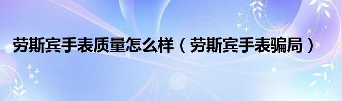 大家好,小晋来为大家解答以下问题,关于劳斯宾手表质量怎么样,劳斯宾手表骗局很多人还不知道,今天让我们一起来看看吧!