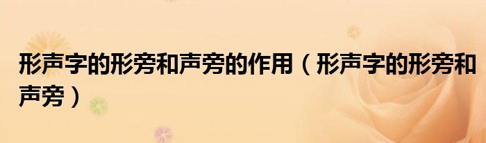 关于形声字的形旁和声旁的作用,形声字的形旁和声旁这个很多人还不知道,今天菲菲来为大家解答以上的问题,现在让我们一起来看看吧!