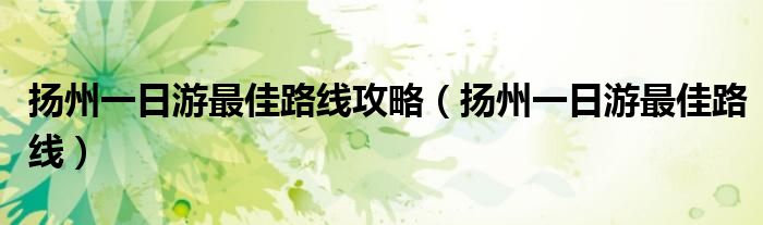 关于扬州一日游最佳路线攻略,扬州一日游最佳路线这个很多人还不知道,今天菲菲来为大家解答以上的问题,现在让我们一起来看看吧!