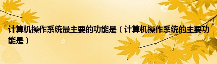 关于计算机操作系统最主要的功能是,计算机操作系统的主要功能是这个很多人还不知道,今天菲菲来为大家解答以上的问题,现在让我们一起来看看吧!