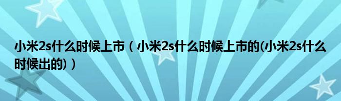 大家好,小常来为大家解答以上问题。小米2s什么时候上市,小米2s什么时候上市的(小米2s什么时候出的)很多人还不知道,现在让我们一起来看看吧!