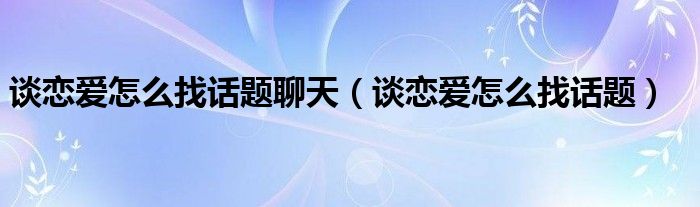关于谈恋爱怎么找话题聊天,谈恋爱怎么找话题这个很多人还不知道,今天菲菲来为大家解答以上的问题,现在让我们一起来看看吧!