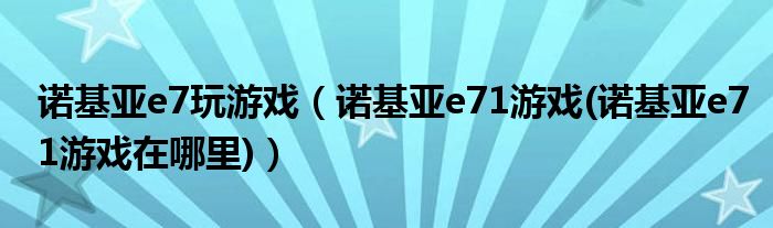 大家好,小常来为大家解答以上问题。诺基亚e7玩游戏,诺基亚e71游戏(诺基亚e71游戏在哪里)很多人还不知道,现在让我们一起来看看吧!