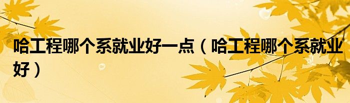 大家好,小晋来为大家解答以下问题,关于哈工程哪个系就业好一点,哈工程哪个系就业好很多人还不知道,今天让我们一起来看看吧!