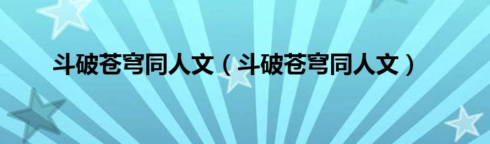 大家好,小晋来为大家解答以下问题,关于斗破苍穹同人文,斗破苍穹同人文很多人还不知道,今天让我们一起来看看吧!