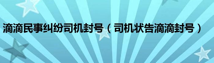 滴滴民事纠纷司机封号(司机状告滴滴封号)