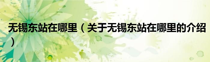 大家好,今天小乐来为大家解答以上的问题。无锡东站在哪里,关于无锡东站在哪里的介绍很多人还不知道,现在让我们一起来看看吧!