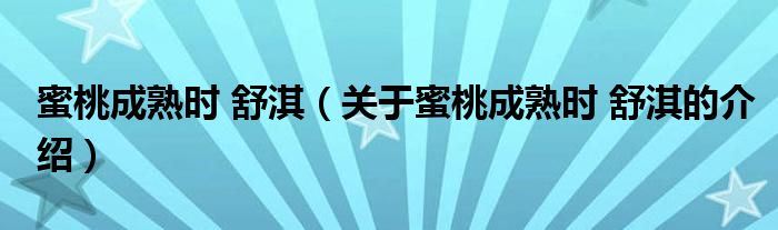 蜜桃成熟时 舒淇(关于蜜桃成熟时 舒淇的介绍)