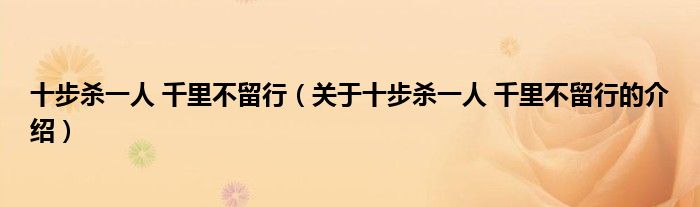 十步杀一人 千里不留行(关于十步杀一人 千里不留行的介绍)