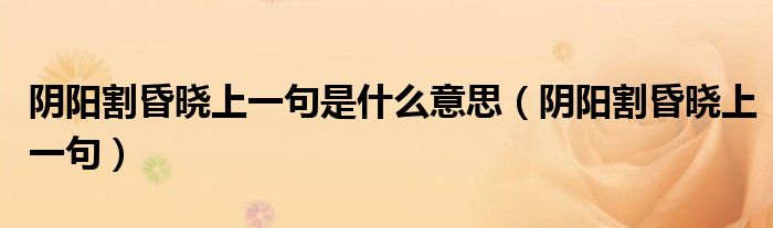 大家好,小晋来为大家解答以下问题,关于阴阳割昏晓上一句是什么意思,阴阳割昏晓上一句很多人还不知道,今天让我们一起来看看吧!