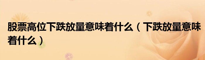 关于股票高位下跌放量意味着什么,下跌放量意味着什么这个很多人还不知道,今天菲菲来为大家解答以上的问题,现在让我们一起来看看吧!
