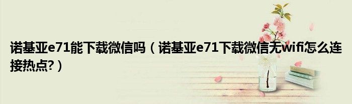 大家好,今天小悦来为大家解答以上问题。诺基亚e71能下载微信吗,诺基亚e71下载微信无wifi怎么连接热点?很多人还不知道,现在让我们一起来看看吧!
