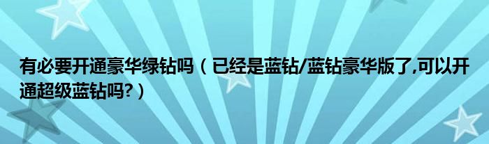 大家好,今天小悦来为大家解答以上问题。有必要开通豪华绿钻吗,已经是蓝钻/蓝钻豪华版了,可以开通超级蓝钻吗?很多人还不知道,现在让我们一起来看看吧!