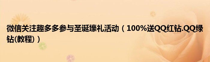 大家好,今天小悦来为大家解答以上问题。微信关注趣多多参与圣诞壕礼活动,100%送QQ红钻.QQ绿钻(教程)很多人还不知道,现在让我们一起来看看吧!
