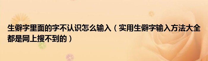 大家好,今天小悦来为大家解答以上问题。生僻字里面的字不认识怎么输入,实用生僻字输入方法大全都是网上搜不到的很多人还不知道,现在让我们一起来看看吧!