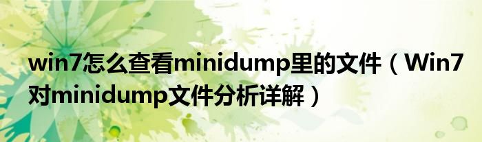 大家好,小太来为大家解答以上问题。win7怎么查看minidump里的文件,Win7对minidump文件分析详解很多人还不知道,现在让我们一起来看看吧!
