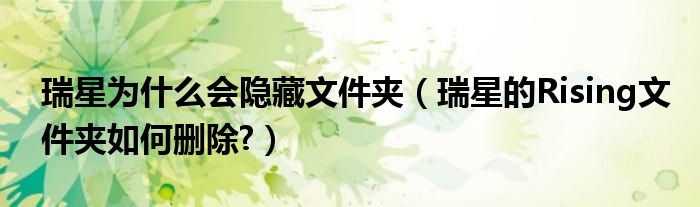 瑞星为什么会隐藏文件夹(瑞星的Rising文件夹如何删除?)