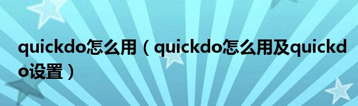 大家好,小太来为大家解答以上问题。quickdo怎么用,quickdo怎么用及quickdo设置很多人还不知道,现在让我们一起来看看吧!