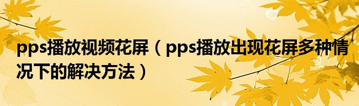 大家好,小太来为大家解答以上问题。pps播放视频花屏,pps播放出现花屏多种情况下的解决方法很多人还不知道,现在让我们一起来看看吧!