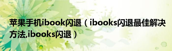 大家好,小太来为大家解答以上问题。苹果手机ibook闪退,ibooks闪退最佳解决方法,ibooks闪退很多人还不知道,现在让我们一起来看看吧!