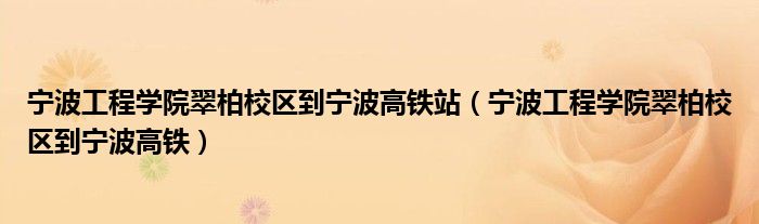 关于宁波工程学院翠柏校区到宁波高铁站,宁波工程学院翠柏校区到宁波高铁这个很多人还不知道,今天菲菲来为大家解答以上的问题,现在让我们一起来看看吧!