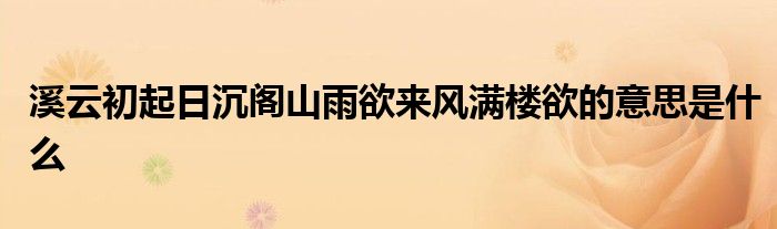 关于溪云初起日沉阁山雨欲来风满楼欲的意思是什么这个很多人还不知道,今天菲菲来为大家解答以上的问题,现在让我们一起来看看吧!