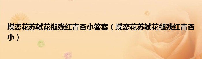 关于蝶恋花苏轼花褪残红青杏小答案,蝶恋花苏轼花褪残红青杏小这个很多人还不知道,今天菲菲来为大家解答以上的问题,现在让我们一起来看看吧!