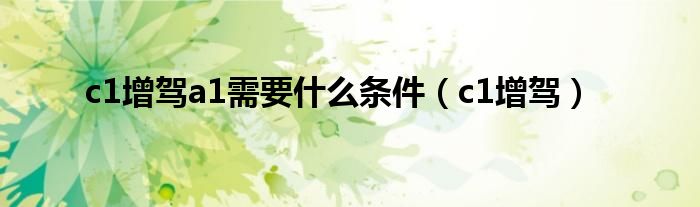 关于c1增驾a1需要什么条件,c1增驾这个很多人还不知道,今天菲菲来为大家解答以上的问题,现在让我们一起来看看吧!