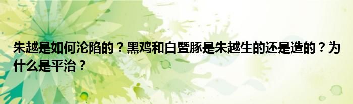 关于朱越是如何沦陷的?黑鸡和白暨豚是朱越生的还是造的?为什么是平治?这个很多人还不知道,今天菲菲来为大家解答以上的问题,现在让我们一起来看看吧!
