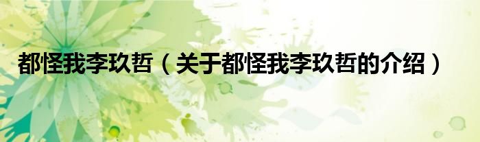 大家好,今天小乐来为大家解答以上的问题。都怪我李玖哲,关于都怪我李玖哲的介绍很多人还不知道,现在让我们一起来看看吧!