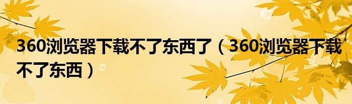 关于360浏览器下载不了东西了,360浏览器下载不了东西这个很多人还不知道,今天菲菲来为大家解答以上的问题,现在让我们一起来看看吧!