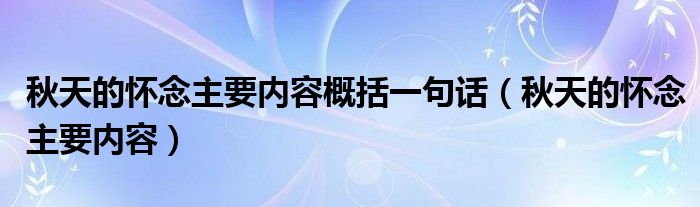 关于秋天的怀念主要内容概括一句话,秋天的怀念主要内容这个很多人还不知道,今天菲菲来为大家解答以上的问题,现在让我们一起来看看吧!