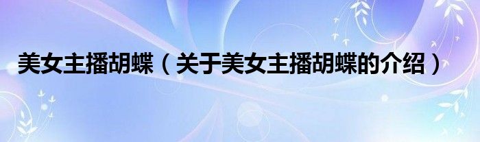 大家好,今天小乐来为大家解答以上的问题。美女主播胡蝶,关于美女主播胡蝶的介绍很多人还不知道,现在让我们一起来看看吧!