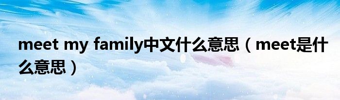 关于meet my family中文什么意思,meet是什么意思这个很多人还不知道,今天菲菲来为大家解答以上的问题,现在让我们一起来看看吧!